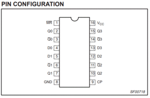 All Q outputs will be forced Low independent of clock or data inputs by a Low voltage level on the MR input. The device is useful for applications where both true and complement outputs are required, and the clock and master reset are common to all storage elements.